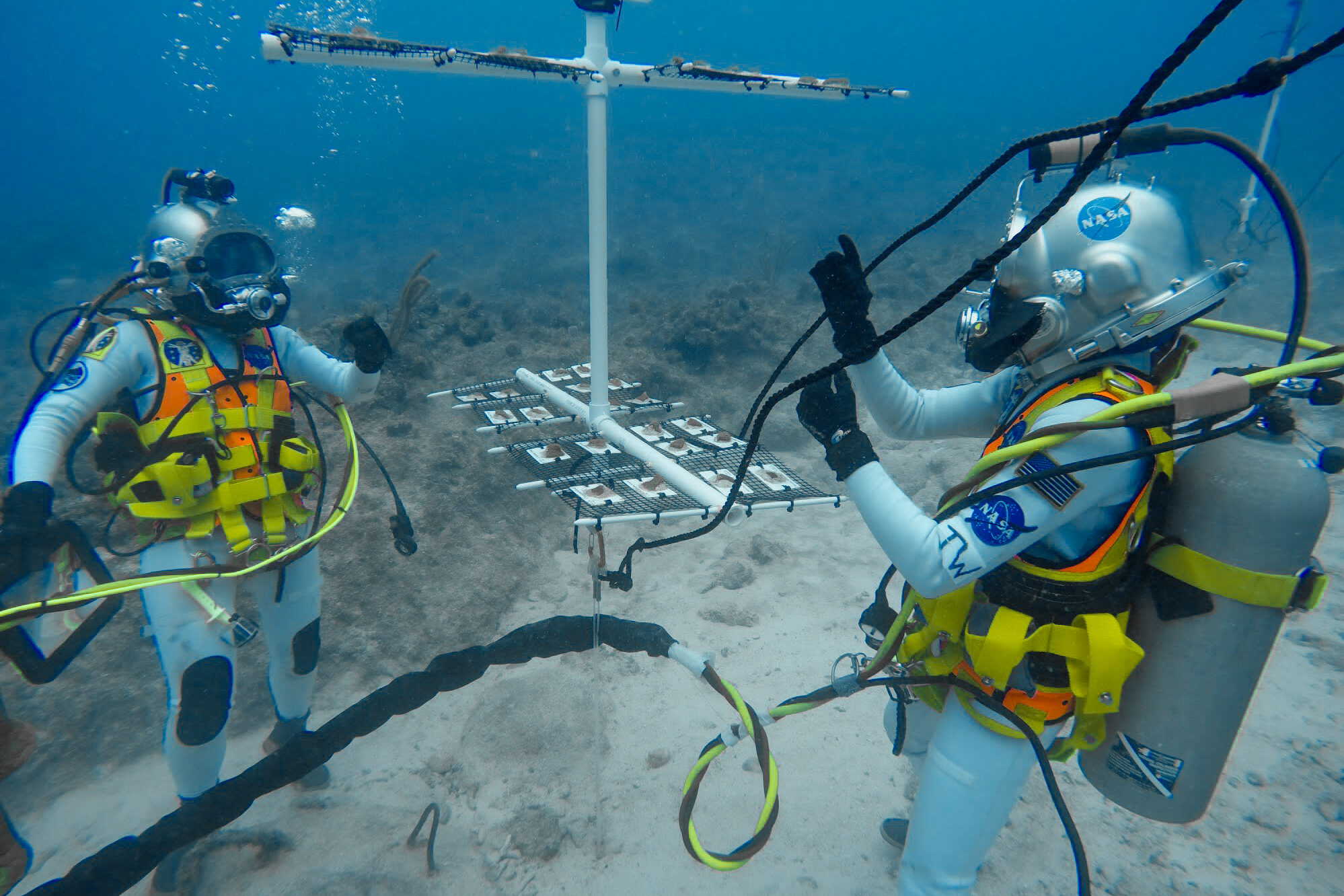 CRF collaboration with NASA has extended beyond mapping. During NEEMO 23 in 2019, CRF scientists trained astronauts to assemble and install boulder Coral Tree structures underwater. Working in full dive gear, the astronauts carried out the tasks step by step, handling tools, securing components and installing structures on the seafloor — mirroring the kind of fine motor skills, coordination and problem-solving required during spacewalks.
