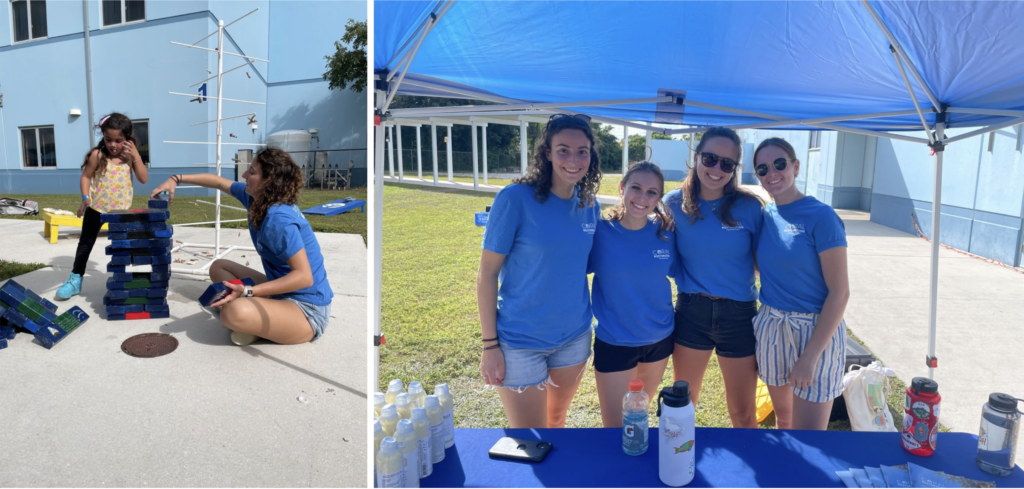 The students had so much fun with our activity booth! At our booth we had plenty of games including Restoration Relay, Biodiversity Jenga, and cornhole with MyChelle reef safe sunscreen and ENSO rings as prizes. The students got to race their friends wearing SCUBA gear to see who could hang the coral on the Coral Tree™ faster. The students had a blast racing to hang up their corals on their Coral Tree™ as fast as possible! Our Biodiversity Jenga workshop offers a way for kids to learn about what biodiversity is and how it relates to the marine ecosystem and corals in a fun way.